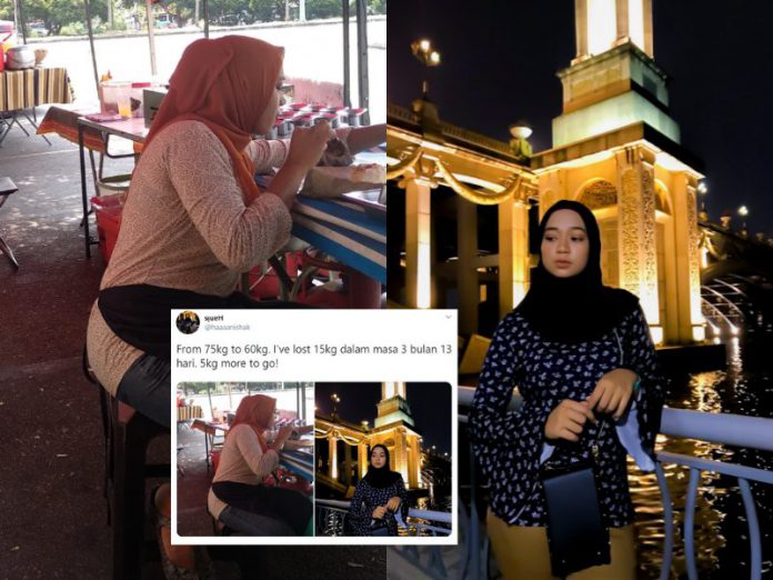 Baru-baru ini, seorang wanita yang dikenali sebagai Hanis berkongsi di laman Twitternya bagaimana dia berjaya menurunkan berat badannya sebanyak 15KG dalam masa tiga bulan 13 hari.