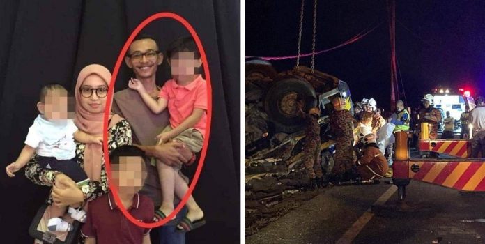 Dalam satu kejadian malam tadi di KM 10, Jalan Lama Kota Bharu, Gopeng, treler yang dipandu arwah suaminya, Hafize Nizam Ali Supian, 30 yang dalam perjalanan dari Gopeng menuju ke Langkap dekat Teluk Intan terbabas sehingga mengakibatkan arwah dan dua anak lelakinya yang mengikut bapa mereka bekerja, Muhammad Afeef Rafiqie, sembilan tahun serta Arrian Nuh Nizam enam tahun turut menemui ajal di sisi sang bapa.