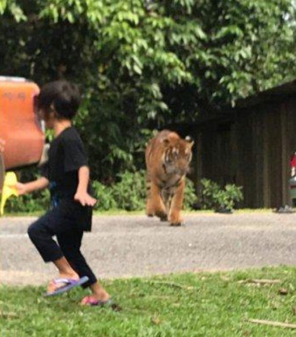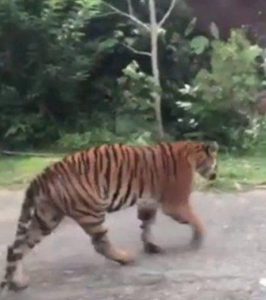 Namun, apa yang menghairankan netizen apabila harimau tersebut tidak menyerang manusia malah secara santai berlegar-legar di kawasan kampung berkenaan.