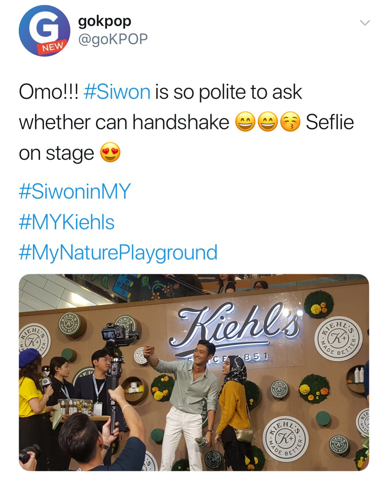 Terlebih dahulu, pelakon dan ahli grup Super Junior iaitu Choi Siwon telah menemui peminatnya di Sunway Pyramid sempena jelajah Kiehl’s memperkenalkan produk kosmetik terbaru mereka.