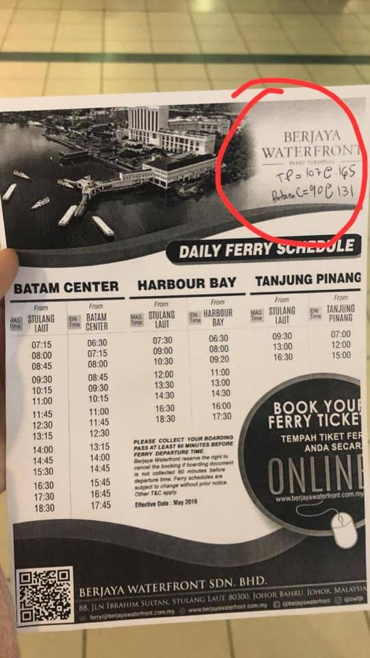 Please standby 100k rp untuk seaport tax dari Batam ke Stulang. Seaport tax ni wajib ye. Kat Stulang tak kena bayar. Kat Batam je kena. Jangan shopping sampai licin duit & lupa asingkan seaport tax