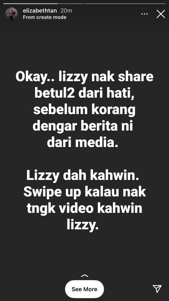 Biarpun empunya badan masih belum mengesahkan perkara tersebut dan dilihat masih berteka-teki dengan peminat menerusi hantaran Instagram Story pada pagi ini, foto perkahwinan Elizabeth yang mesra dengan panggilan Lizzy telahpun bertebaran di media sosial sehingga menjadi bualan warganet pada pagi ini.
