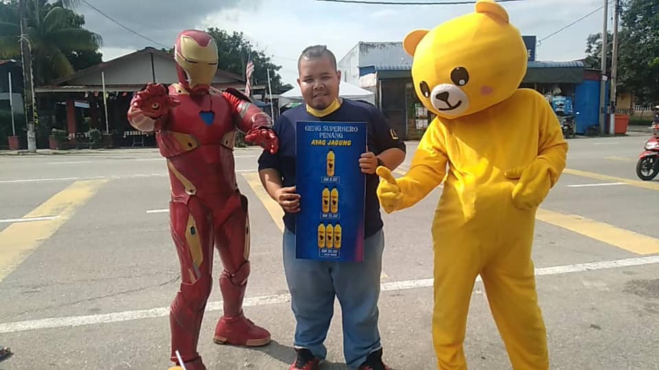 Hal ini menyebabkan lelaki ini yang juga merupakan seorang bekas kakitangan syarikat telekomunikasi tidak mengeluh sebaliknya berikhtiar meneruskan kehidupan dan memanfaatkan kreativitinya mengenakan kostum ‘Iron Man’ untuk berniaga air jagung.