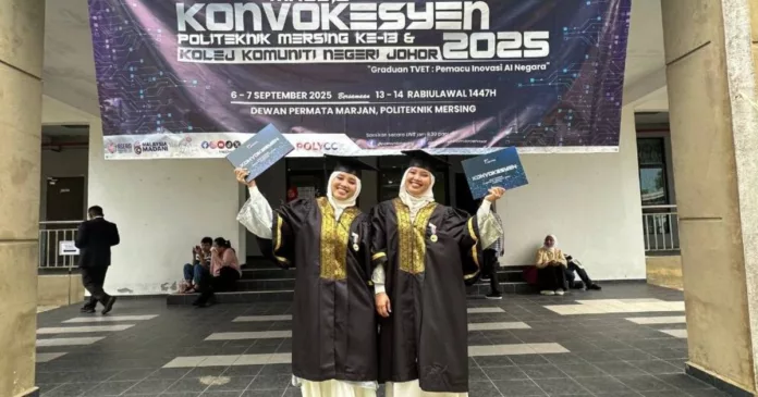 Konvokesyen Kolej Komuniti Negeri Johor 2025 kali ini jadi lebih istimewa apabila bukan seorang, tetapi dua pasangan kembar diumumkan sebagai penerima Anugerah Pengarah. Majlis penuh bermakna itu berlangsung di Dewan Permata Marjan, Politeknik Mersing, dan kisah kejayaan mereka kini menjadi inspirasi kepada ramai pelajar muda di seluruh negara.