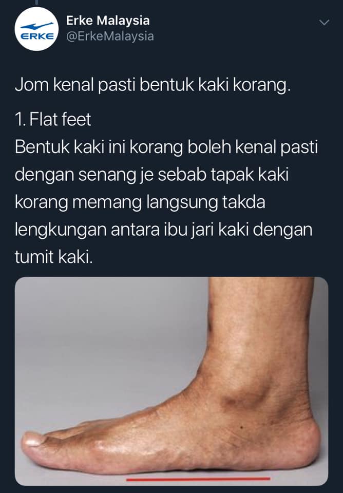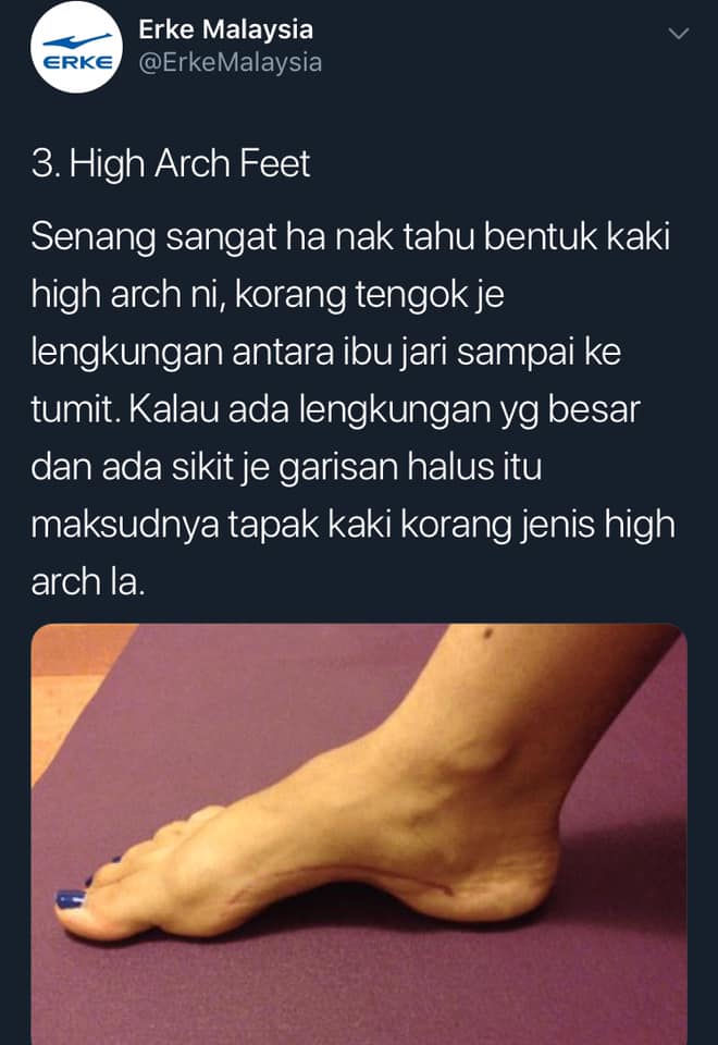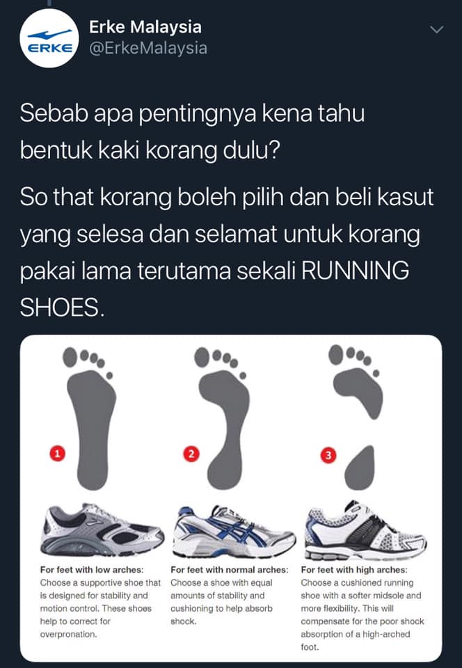 REMAJA kongsikan tips dari Erke Malaysia mengenai tiga jenis bentuk kaki supaya tak tersalah beli kasut yang sesuai dengan bentuk kaki tu.