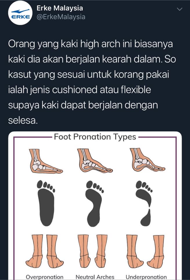 Orang yang bentuk kakinya flat, sesuai beli kasut jenis overpronator. Kasut jenis overpronator ini bantu korang untuk berjalan dengan stabil.