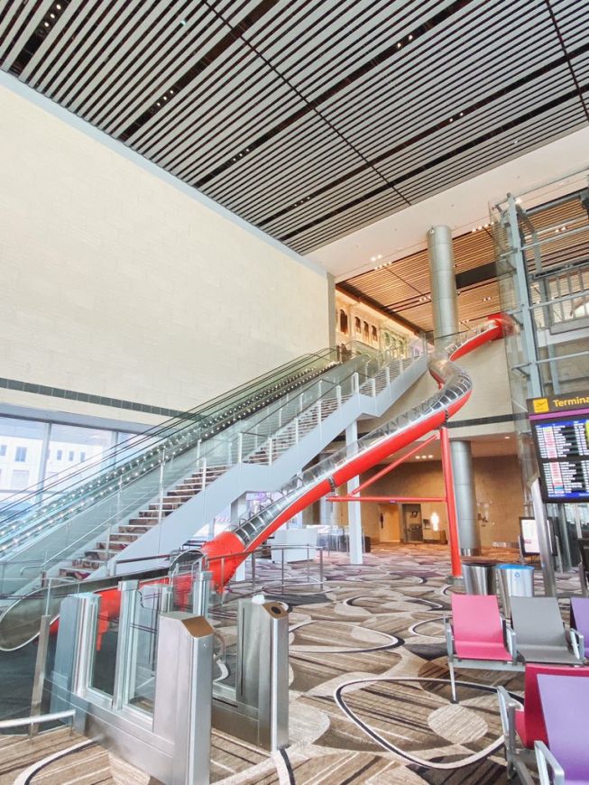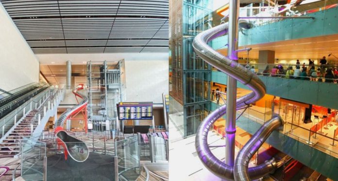Sering kali dipanggil salah satu lapangan terbang terbaik di dunia, Changi yang terkenal dengan tarikan air terjun tertingginya iaitu “Jewel Rain Vortex”, sebenarnya turut mempunyai satu lagi kemudahan unik yang dapat membawa anda ke pintu pelepasan dengan sangat cepat dan menyeronokkan.