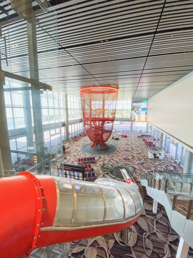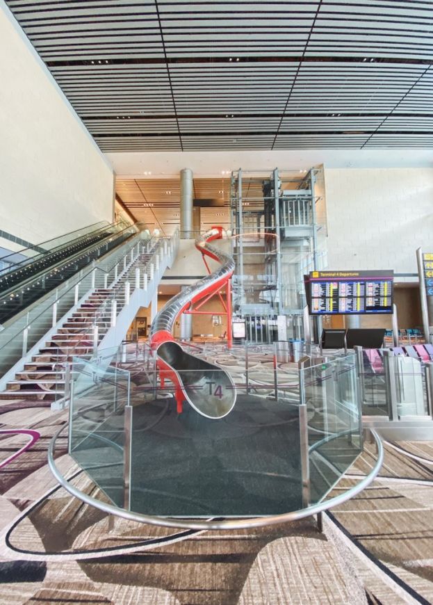 Kemudahan yang dimaksudkan adalah permainan gelongsor berwarna merah yang boleh anda gunakan selepas mengimbas pas berlepas untuk terus ke pintu pelepasan di Terminal 4.