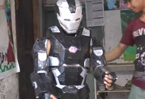 Keadaan berkenaan mendorong remaja berusia 20 tahun itu mereka sendiri sut War Machine Marvel daripada bahan-bahan elektrik terbuang.