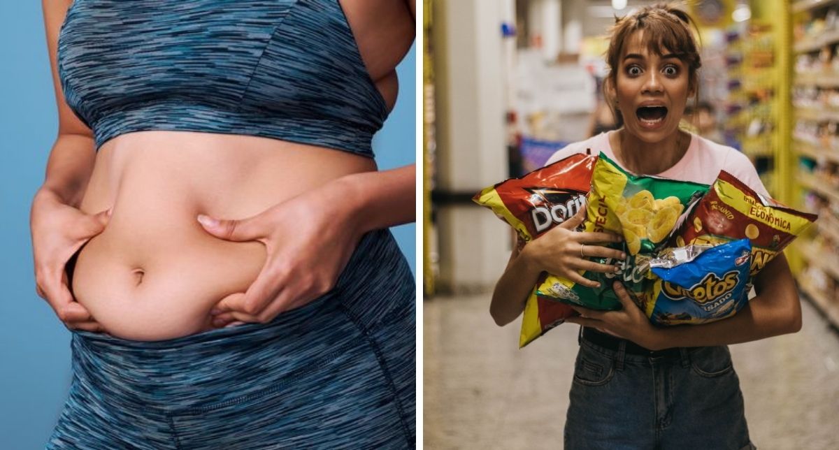 Minuman dan bergas dan makanan segera yang dipek seperti air kotak, keropok dan mi segera akan mengumpul lemak yang banyak dalam perut sehingga sukar dihapuskan.