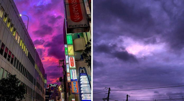 Malah, masyarakat disana juga turut berkongsi gambar keadaan langit yang bertukar menjadi ungu di media sosial mereka.