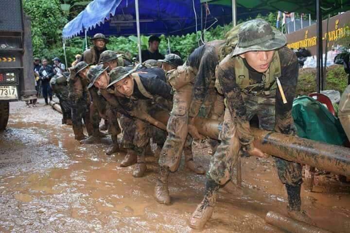 Cukup semata-mata, banjir dan ruang tegang adalah usaha yang menghalang. Penyelam cuba untuk melakukan perjalanan melalui laluan yang sempit dibanjiri sering dengan penglihatan kecil. Menteri Dalam Negeri Anupong Paojinda berkata: “Penyelam berada di kawasan yang gelap. Tidak ada yang rata dan ada lumpur dan batuan di mana-mana.