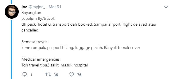 Jadi, dari situ dia mula sedar bahawa betapa pentingnya travel insurans.