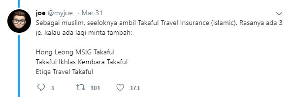 Seperti yang pernah dikongsi oleh Joe di laman twitternya, jika sebelum ini dia tidak ambil kisah sangat tentang travel insurans, tapi semasa percutiannya di China tahun lepas berlaku rebut taufan. Airport tutup, flight delayed kepada empat hari selepas kejadian.