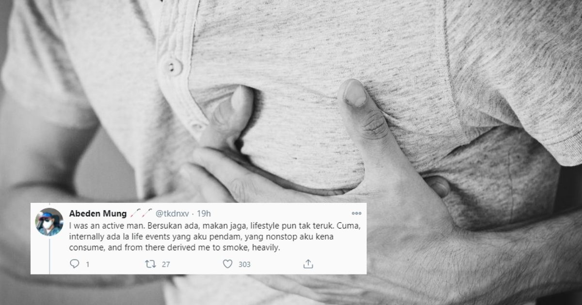 Jangan pelik sekiranya korang melihat individu yang aktif bersukan juga tidak terkecuali terkena serangan jantung ini. Seperti apa yang dikongsi oleh seorang pemuda di Twitter yang dikenali sebagai Abeden Mung, setelah genap sebulan mengalami serangan jantung, dia mengambil keputusan untuk berkongsi kisahnya kepada umum tentang pengalaman yang dihadapinya.