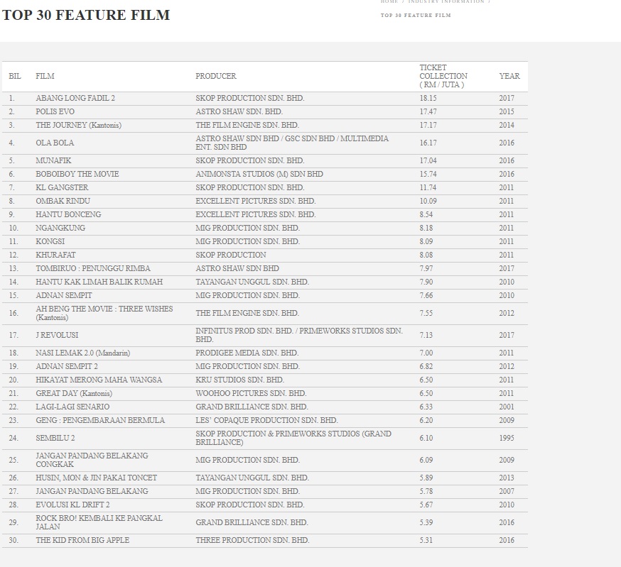 Bukan mahu terus mengkritik dunia perfileman tetapi industri seni di Indonesia jauh berbeza kerana filem terbaik mereka iaitu ‘Warkop DKI Reborn: Jangkrik Boss! Bahagian 1’ berjaya mengutip RM67.2 juta diikuti Apa Ada Dengan Cinta 2 (AADC2) iaitu sebanyak RM 35.9 juta.