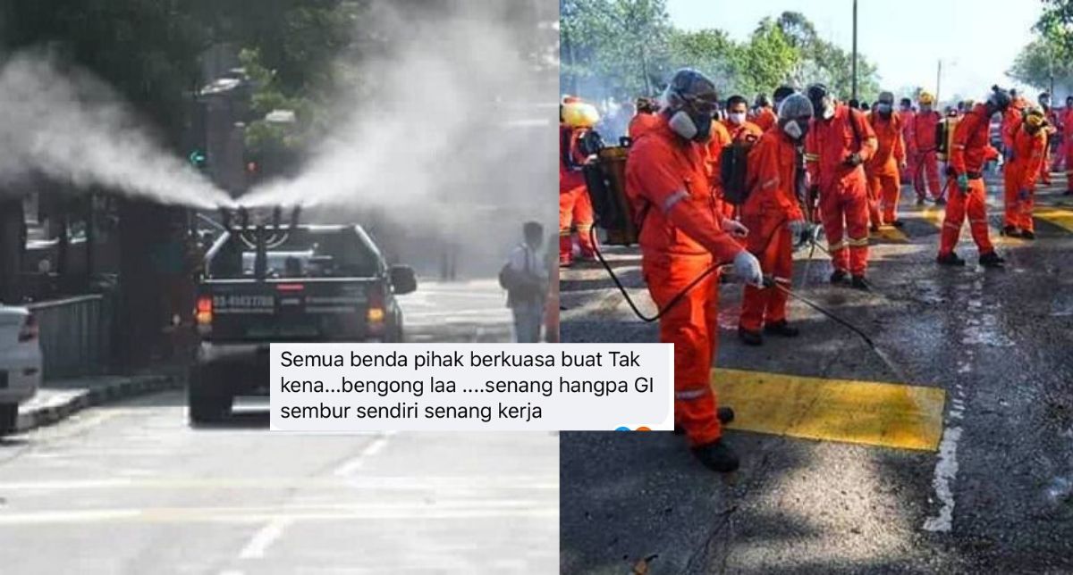 Namun, timbul rasa tidak puas hati segelintir masyarakat dan baru tadi page facebook Public Health Malaysia ada membuat naik status dengan caption yang panjang lebar, dan menyelar tindakan kerajaan membuat disinfeksi di jalanraya.