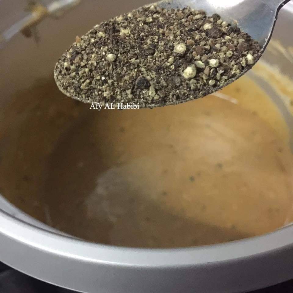 5. Masukkan 3/4 sudu besar serbuk lada hitam kisar. Juga masukkan 3/4 sudu kecil gula