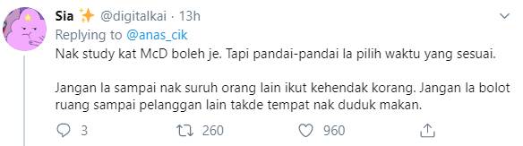 Ramai juga yang berpuas hati dengan thread lelaki ini dan tidak menyokong tindakan pelajar untuk belajar di restoran makanan segera.
