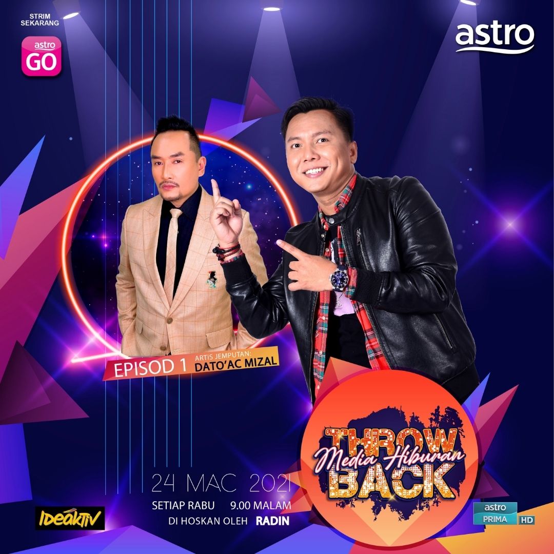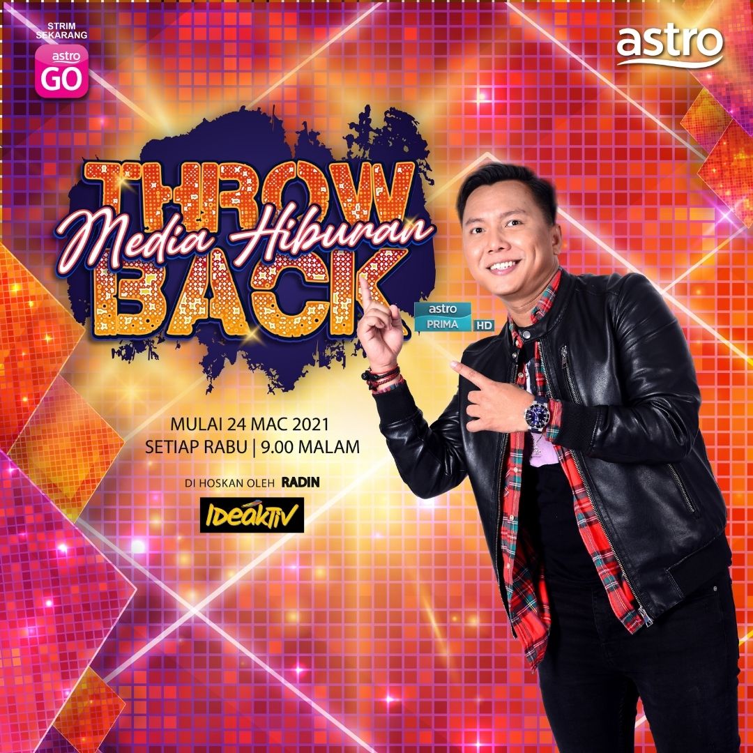 Dihoskan oleh Radin, jangan lepaskan peluang untuk menonton Media Hiburan Throwback yang akan ditayangkan di saluran Astro Prima bermula 24 Mac 2021 pada jam 9 malam.