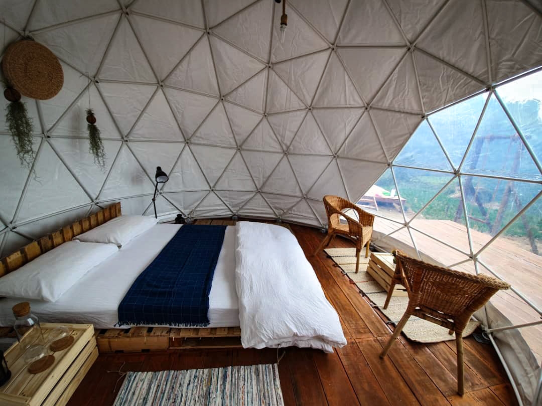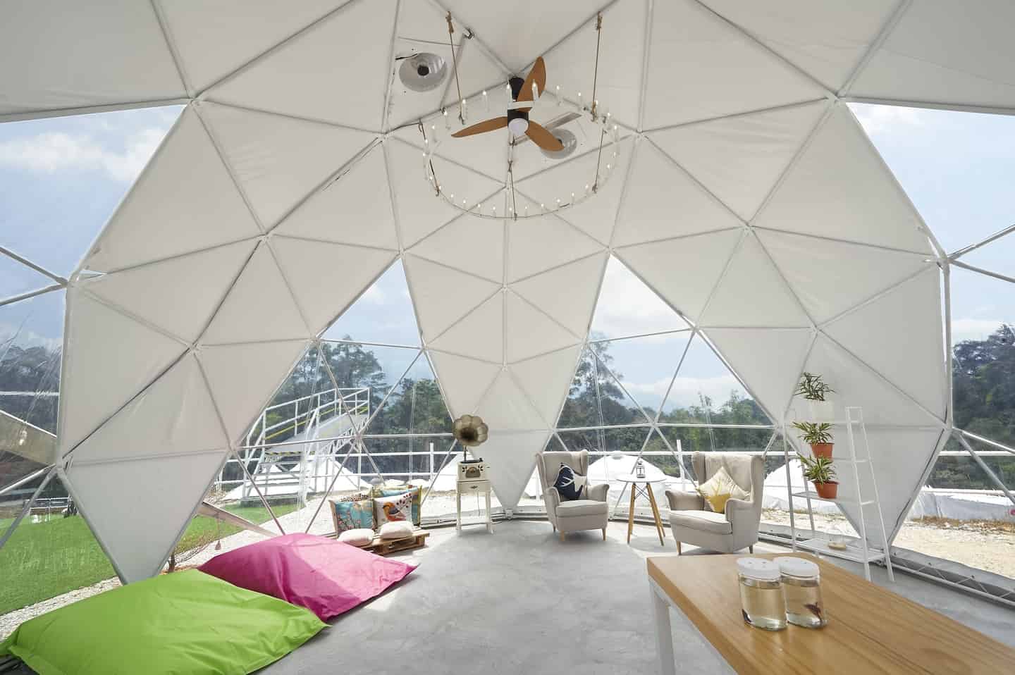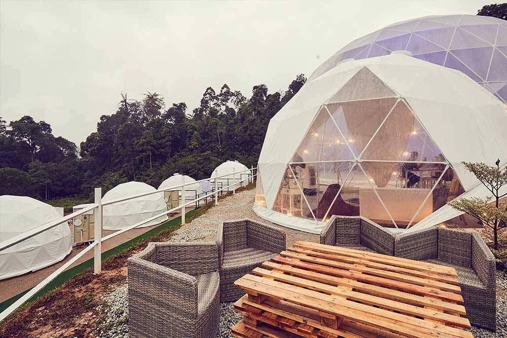 Antara jenis penginapan yang disediakan adalah seperti Dome Room dengan sebahagian dinding kaca membentangkan pemandangan langit, VIP Dome yang lengkap dengan jakuzi peribadi, Bell Tent untuk keselesaan 4 orang penginap dan Family Dome untuk 8 pax.