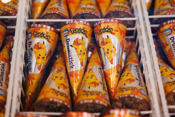Menampilkan ais krim perisa pecan dengan kacang badam yang disaluti sos coklat, Drumstick Pika Pika Cone ini nampak eksklusif dengan balutan packaging kuning keemasan bersama imej Pikachu.