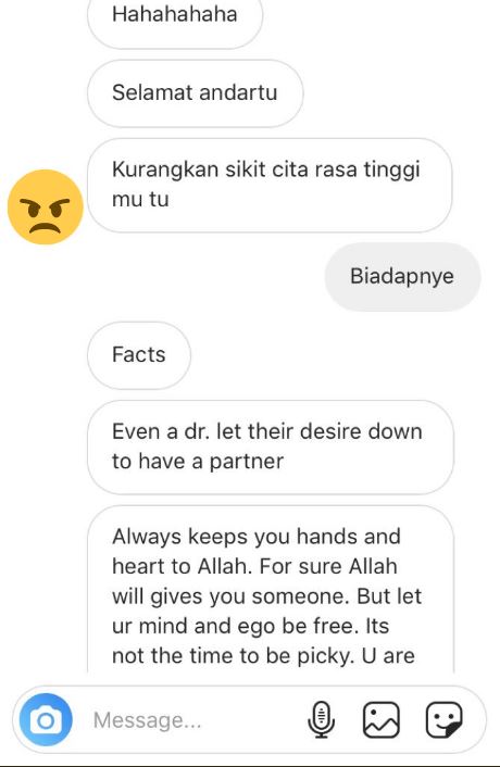 Tular di media sosial apabila seorang pengguna akaun Twitter bernama Anis Ashaari memuat naik Tweet semalam berhubung isu jodoh ini. Alkisahnya, seorang rakan lama gadis berusia 25 tahun itu menghantarkan mesej biadap kepadanya dan memanggilnya ‘andartu’ hanya disebabkan dia belum berkahwin lagi.