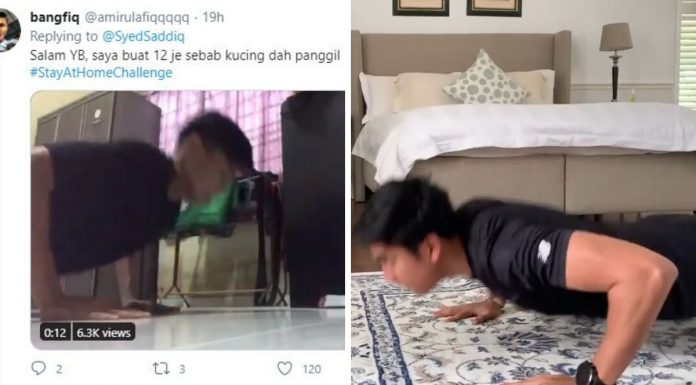 Salam YB, saya buat 12 je sebab kucing dah panggil#StayAtHomeChallenge pic.twitter.com/HZusGHcaIk