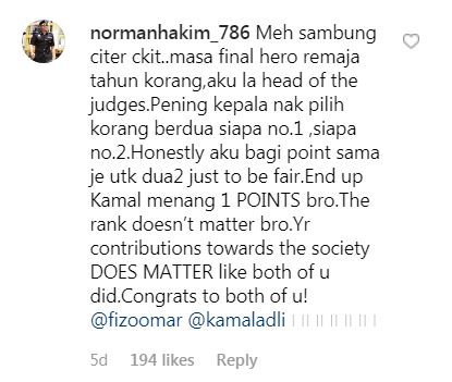 “Itulah cerita budak Kelantan dan budak Pahang baru masuk industri. Alhamdulillah job berlakon, model, emcee semua sebat janji Halal. Rezeki Allah diberi sesuai dengan kita sebenarnya. Aku bangga dengan kau bro, very committed sehingga kau berjaya sekarang, bantu keluarga,” katanya.