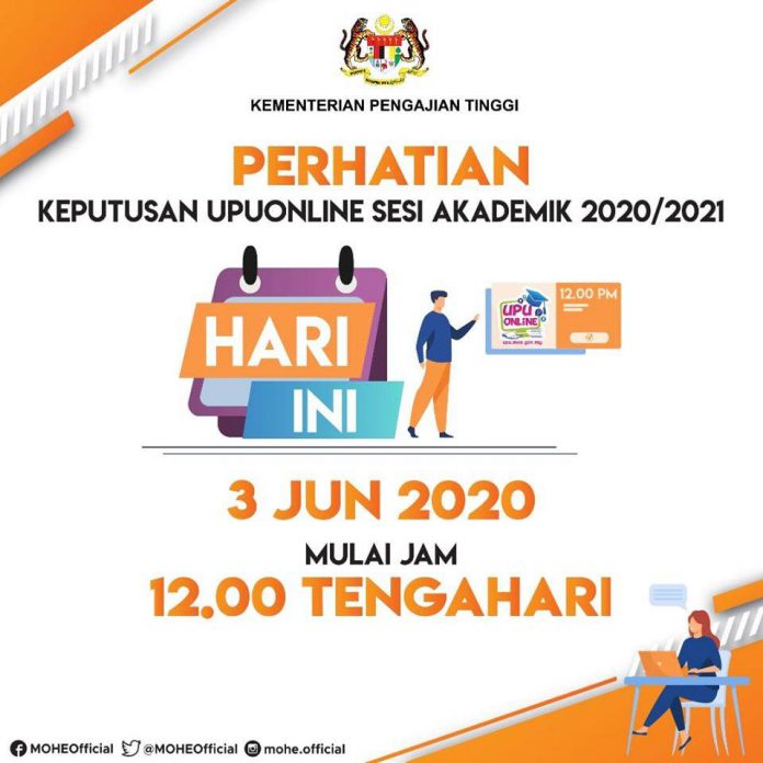Di fb Kementerian Pengajian Tinggi memaklumkan, result akan mula diketahui pada jam 12.00 tengahari ini.