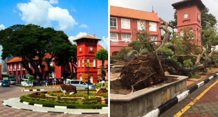Kalau korang bercuti Melaka mesti perasan dengan pokok-pokok ikonik di tengah bandaraya Melaka. Namun berita sedih kita terima apabila pokok besar yang berusia lebih 100 tahun itu yang sekian lama menjadi ikonik bagi bandar tersebut, kini tiada lagi. Menerusi laman Facebook penduduk di Melaka memaklumkan kejadian ini berlaku pada awal pagi tadi dan pokok tersebut tumbang sehingga menimpa wayar elektrik di kawasan tersebut.