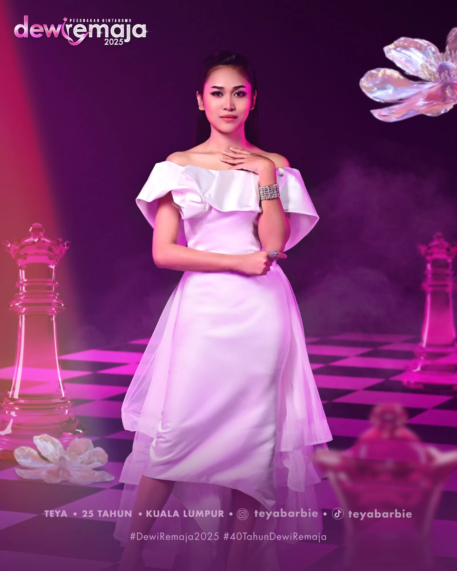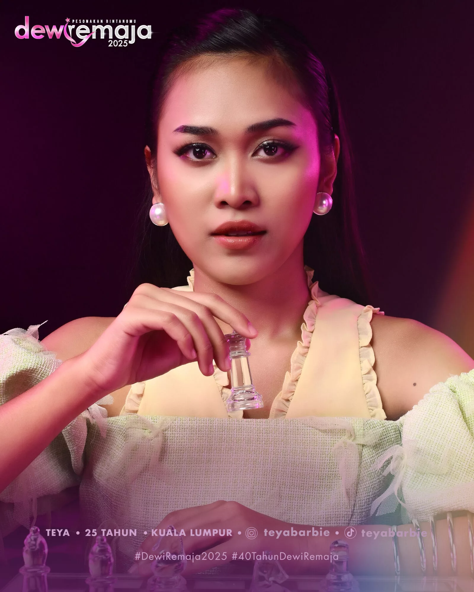 Nama : Nur Fatihah Binti HuslahAsal : Segambut, Kuala LumpurUmur : 25 TahunTarikh Lahir : 26 November 2000Pendidikan : Sijil Tamat Kursus Kru Kabin, Graduan Diploma Komunikasi & Media dan Graduan Ijazah Sarjana Muda Komunikasi (Komunikasi Sosial)Hobi : Mengunjungi kafe & 'thrifting'Idola : Eve lily & Sara CamposarconeInstagram :@teyabarbieTikTok :@teyabarbie Sejak di tadika, saya sudah bersekolah di sekolah Cina, jadi majoriti rakan saya berbangsa Cina. Kedua-dua ibu bapa saya berasal dari Indonesia, tetapi kami adik-beradik dilahirkan di Malaysia. Disebabkan itu, saya tidak dapat melanjutkan pengajian di Universiti Teknologi MARA (UiTM), namun saya bersyukur kerana ditawarkan untuk belajar di Universiti Pendidikan Sultan Idris (UPSI). Sepanjang di universiti, saya aktif sebagai penyampai radio dan juga berlakon. Pada peringkat ijazah sarjana muda pula, saya banyak terlibat dalam penggambaran TVC, dan dari situ saya belajar bahawa bidang ini sangat mencabar dan memerlukan daya tahan yang tinggi. Sebenarnya, saya tidak menjangka dapat tersenarai dalam Top 12 Dewi Remaja kerana cita-cita saya sejak dulu adalah untuk menjadi pramugari. Namun, Alhamdulillah, rezeki saya tertulis di sini. Saya tidak terlalu memikirkan tentang menang atau tidak, misi utama saya adalah untuk belajar dan menimba pengalaman.