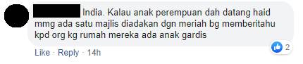 Ramai yang meninggalkan komen bahawa mereka baru sahaja mengetahui tentang upacara sambutan akil baligh. Menurut warganet yang lain, ia merupakan tradisi bagi masyarakat India yang mereka mempunyai anak gadis.