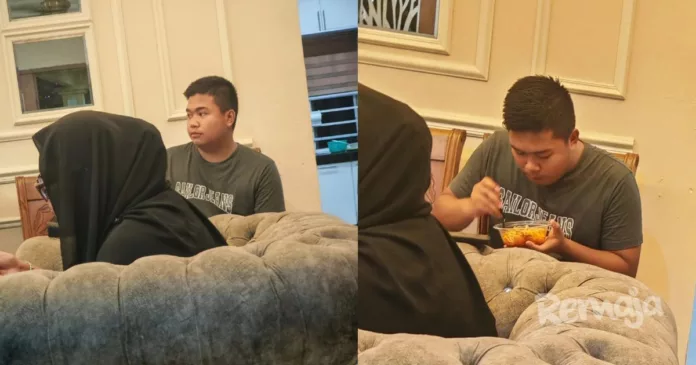 “Bersungguh-sungguh dia makan sebab takut saya marah… banyak lagi balance makanan. Pelan-pelan Mikaiel, nanti tercekik… Ibu tak marah, tapi sedih kawan-kawan buat macam tu.”