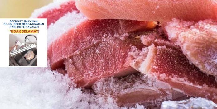 Dalam bulan Ramadan ini, adakala kita terlupa untuk mengeluarkan lauk mentah terlebih dahulu sebelum mula memasak sekitar jam 5.00 petang ke atas. BIla melihat waktu yang semakin ke penghujung dan khuatir makanan tidak sempat dimasak, kita akan merendam lauk mentah sejuk beku ini ke dalam air panas untuk memudahkan proses nyah beku berlaku dengan cepat. Malah baru ini tular ada pengguna di media sosial berkongsi menggunakan hair dryer untuk menyah beku dengan lebih cepat dan cara ini dianggap tepat oleh pengguna lain.