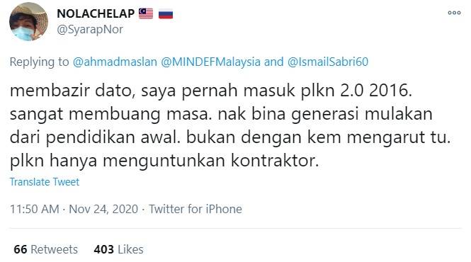 Jadi apabila Menteri Pertahanan mengumumkan ‘comeback’ PLKN ini kepada remaja Malaysia di Dewan Rakyat pada hari ini, tidak hairanlah apabila ramai yang tidak bersetuju dengan perancangan tersebut.