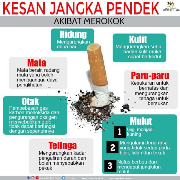 Kesan jangka pendek bagi perokok. Kalau jangka panjang lagi teruk. Pilihan di tangan korang semua