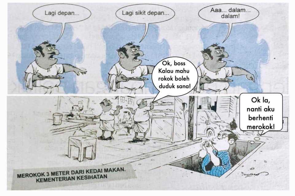 Ingat ya, boleh merokok di tempat awam tetapi bukan di 23 lokasi yang sudah diwartakan. Kalau pergi ke kedai makan, restoran dan sebagainya, jaraknya mesti 3 meter keluar ya. BUKAN DALAM KEDAI MAKAN!