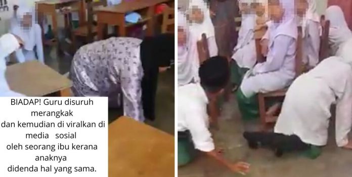 Hari ini kecoh di media sosial seorang ibu datang ke sebuah sekolah agama (tidak dinyatakan lokasi) dan bertindak menyuruh ustazah yang mengajar anak pendidikan agama merangkak seperti denda yang berlaku pada anaknya.
