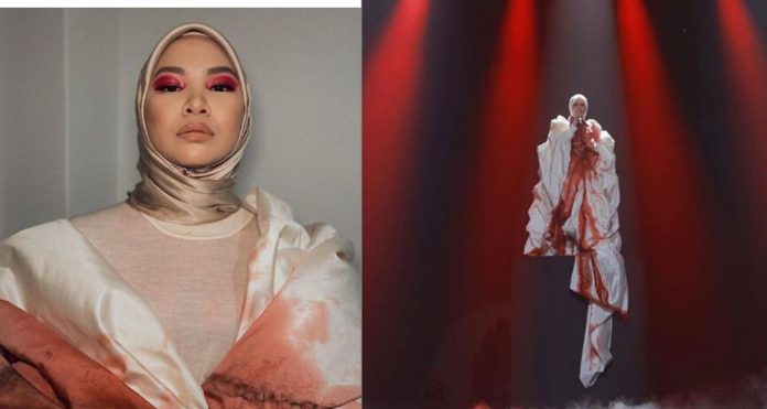 Kalau korang tengok persembahan AJL Aina, pasti korang dapat melihat beliau mengenakan busana berwarna putih dan terdapat darah pada baju beliau. Berikutan itu, Aina Abdul tampil menjelaskan di Instagram miliknya bahawa darah tersebut adalah simbolik kepada kekecewaan yang ditanggung wanita akibat melukai hati insan tersayang.