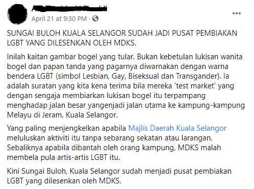 Menurut perkongsian lelaki tersebut, lelaki tersebut menyatakan Majlis Daerah Kuala Selangor sendiri meluluskan aktiviti itu tanpa sebarang sekatan atau larangan.Sebaliknya apabila dibantah oleh orang kampung, MDKS malah membela pula artis-artis LGBT itu.