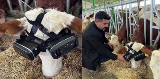 Kreatif, Elak Lembu Stress Petani Pakaikan Lembu Cermin Mata VR