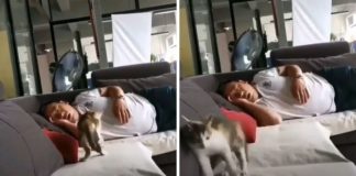Terkejut Lihat Tuan Tidur Berdengkur, Reaksi Kucing Ini Cuit Hati Netizen