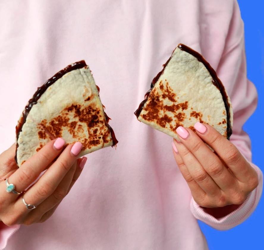 Ini adalah menu appetizer terbaik bagi membangkitkan selera. Dalam balutan tortilla yang dipanggang adalah inti coklat yang kaya dengan rasa.