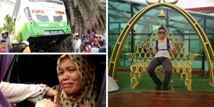 Bas persiaran ini merempuh dua buah kereta lain sebelum terbabas dan melanggar motosikal ditunggang arwah Muhammad dan membawa kepada kematiannya.