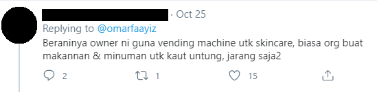 Namun, seorang lelaki yang dikenali sebagai Omar Faayiz telah pun berkongsi informasi tentang vending machine yang dijumpainya menjual produk skincare.