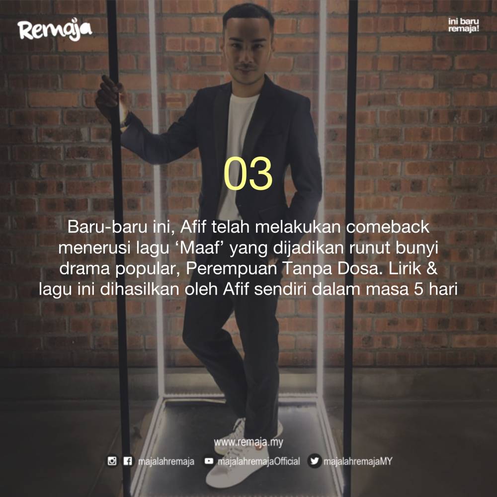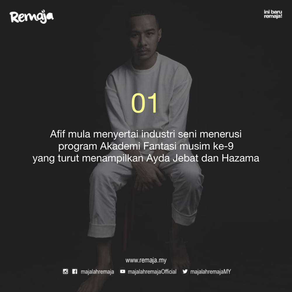 Bagaimanapun, Afif nyata telah memberikan yang terbaik dengan kepercayaan ini dan tidak keterlaluan jika penulis gambarkan gandingan mereka adalah di antara gandingan yang menjadi pada musim ini. Ramai yang tertanya-tanya siapakah gerangan Afif Tirmizie ini.
