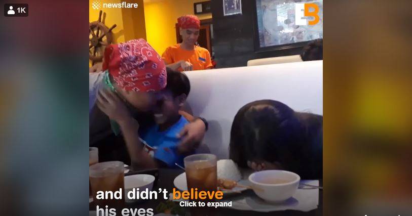 Korang akan sebak bila melihat reaksi anak-anaknya setelah mereka mengetahui bahawa pelayan tersebut adalah ayah mereka.