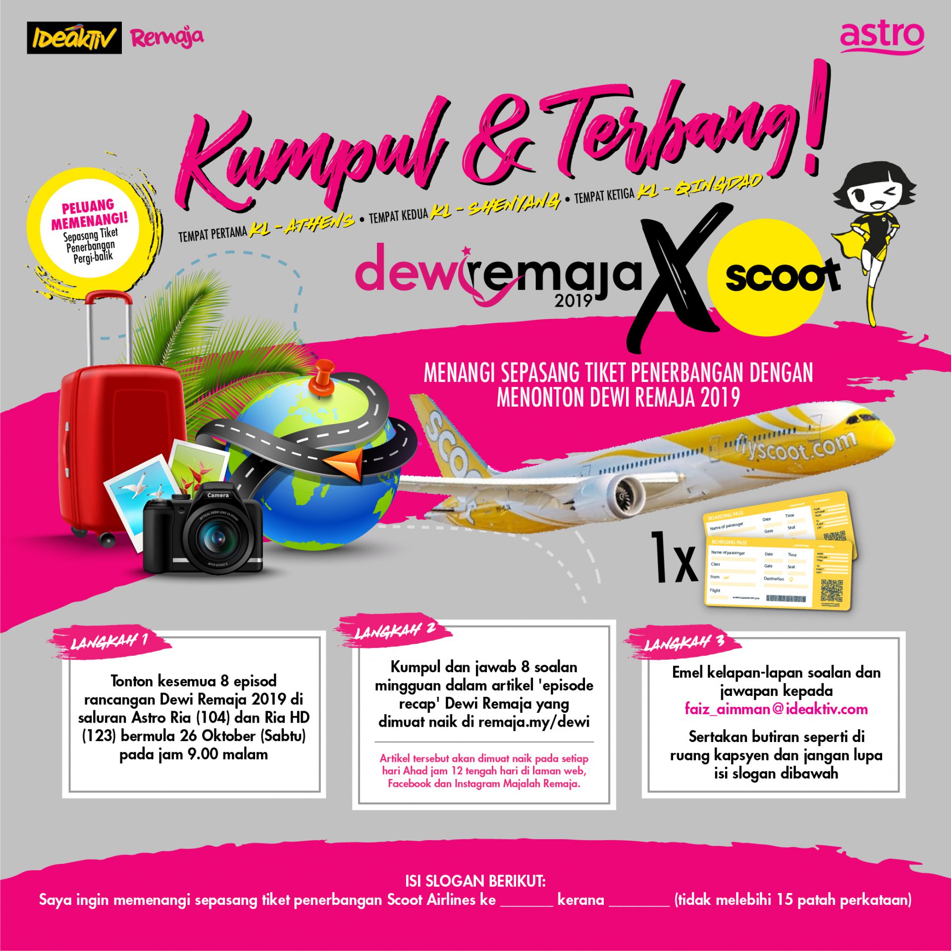 Istimewa untuk Dewi Remaja 2019, kami dengan kolaborasi penaja dari Scoot Airlines mengadakan peraduan khas ‘Kumpul & Terbang’!