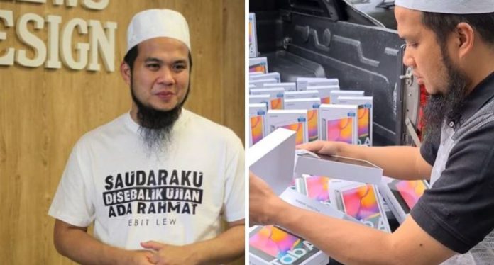 Semalam, di laman sosialnya Ustaz Ebit Lew yang terkenal dengan kemurahan hatinya telah menaja 100 biji Tab untuk dihadiahkan pada pelajar yang memerlukan.